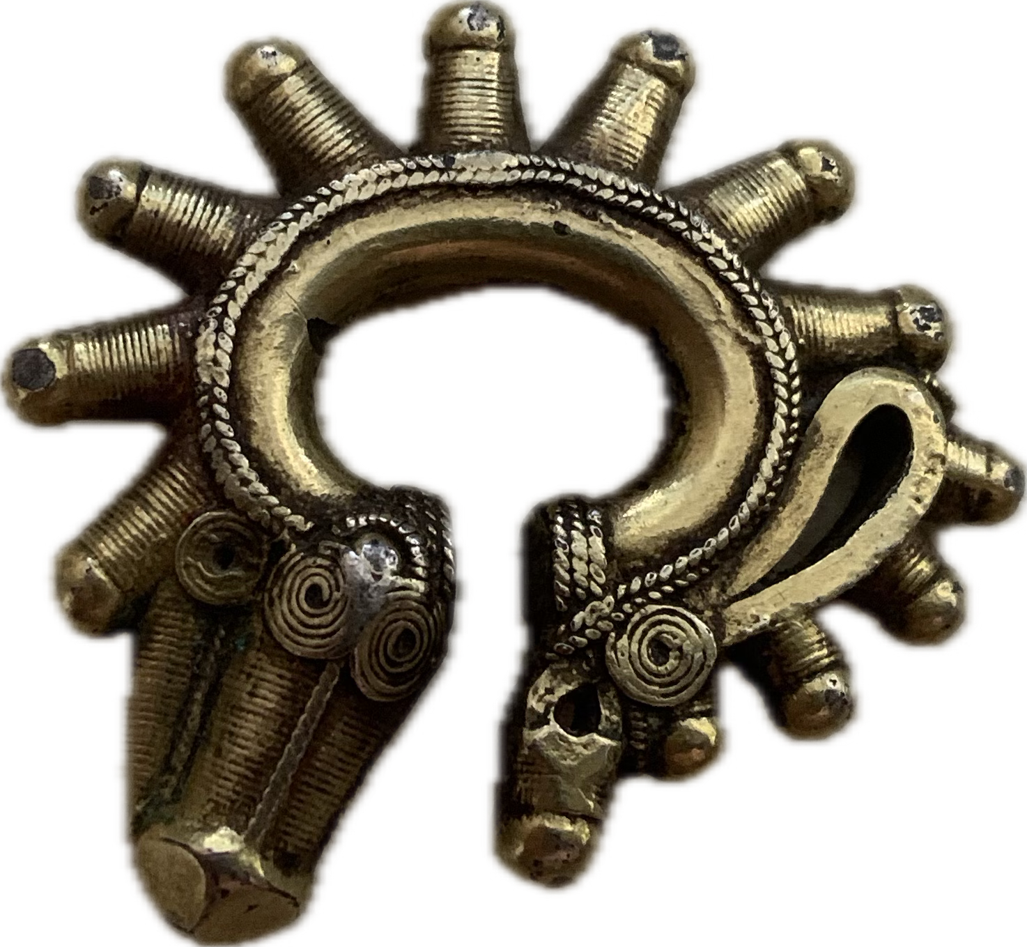 Sold. Tanimbar earring, Moluccas, 19th century. Made from bronze. The earring has a very nice patina. It is worn as a singular piece.
