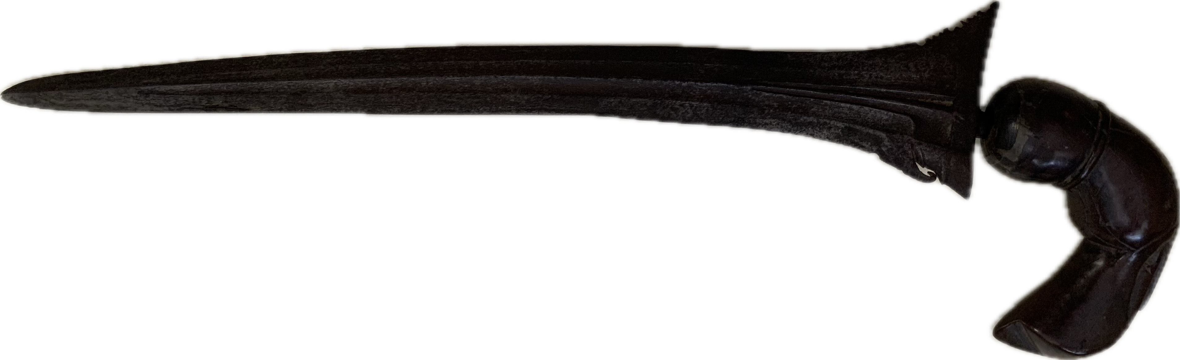 Sold. Keris Tajong, pandai saras. Malay, 19th cent. A very nice keris Tajong. 7 luk. Total length 60cm. Wood sheath and handle. Overal state is very good. Fit of the blade in the wranka is perfect. Wranka is made of a very nice burl wood.